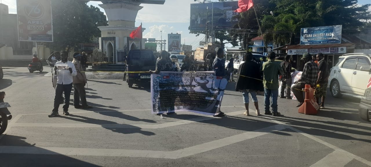 FOKUSMETRO.COM – Aliansi Mahasiswa Papua di Gorontalo bersama Front Demokrasi, yang beranggotakan Komite Nasional Papua Barat (KNPB), Aliansi Mahasiswa dan Pelajar Papua Timur Indonesia (AMPTPI), Ikatan Mahasiswa dan Pelajar Indonesia Papua (IMPIP), serta Liga Mahasiswa Indonesia untuk Demokrasi (LMID), turun ke jalan menggelar aksi unjuk rasa di Bundaran Perlimaan, Kota Gorontalo, Selasa (30/09/2025).